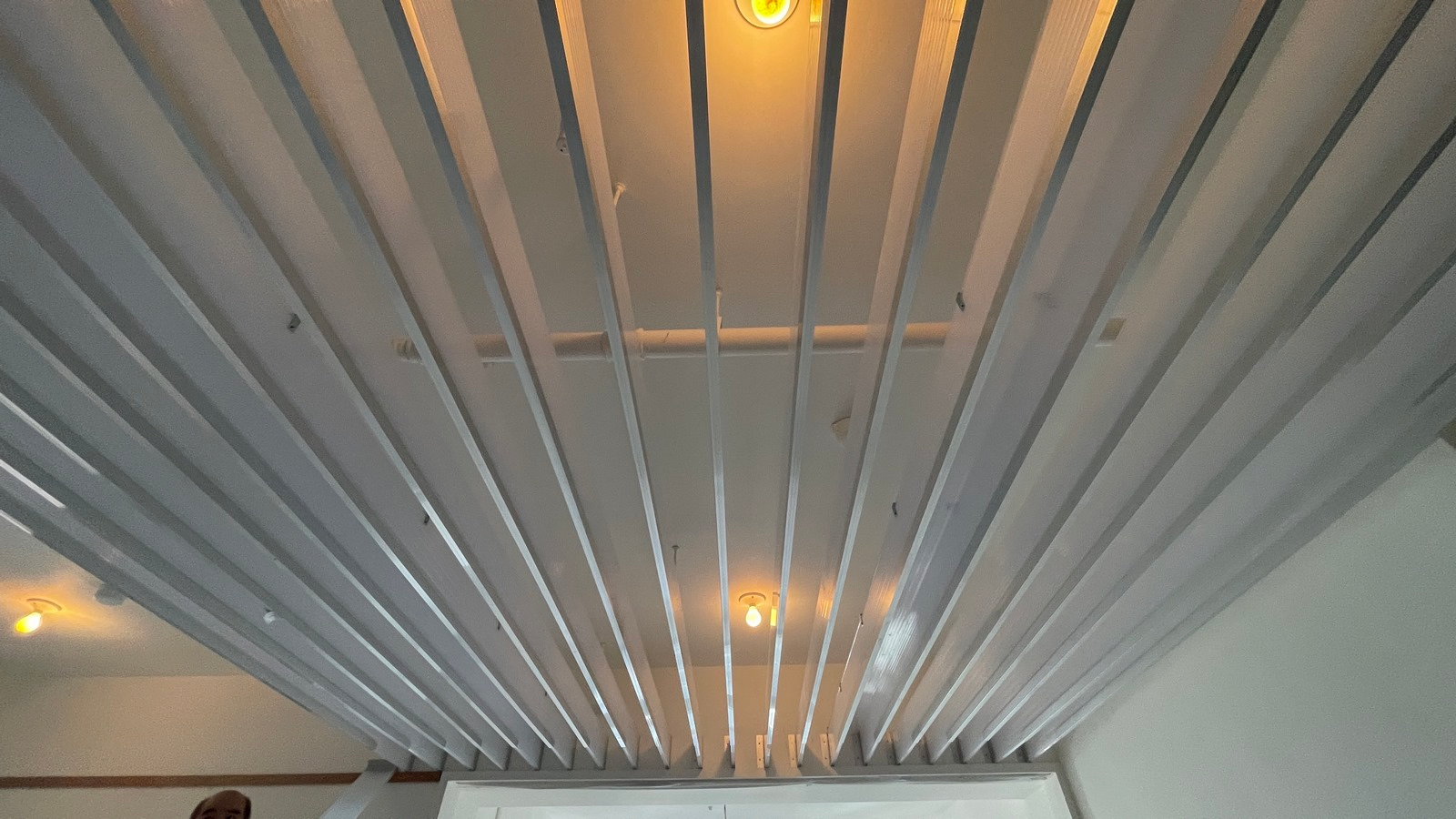 搭配天花格柵固定件,將PC中空板鎖固於鋁收邊條上,搭配LED燈光,使天花板流明亮度可均於擴散並達到明亮的室內天篷